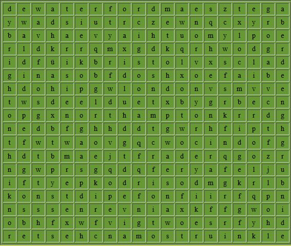 1. Spot the words. Find the nineteen (19) cities. There are only 18 in the table below.