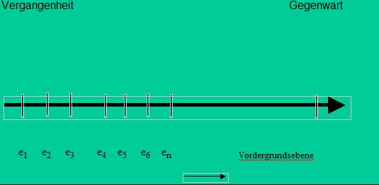 Hier wird die Zeit eindimensional als gerade Linie (Zeitenstrahl) dargestellt.